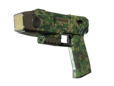 Parfait pour les embuscades rapprochées ou en espace clos, le Zeus x27 rechargeable est capable de neutraliser une unité ennemie en un seul tir. Cette arme a été personnalisée avec un film hydrographique de camouflage vert et ocre.