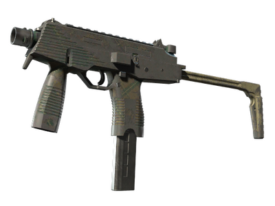 Fabriqué en Suisse, le pistolet mitrailleur MP9 est une arme ergonomique en polymère appréciée des entreprises de sécurité privée. Cette arme a été personnalisée en utilisant un film hydrographique de motifs à carreaux taupe et bleu-vert.