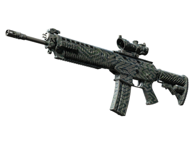 Le fusil d'assaut à lunette SG553, exclusif aux terroristes, est une bonne alternative à l'AK-47 pour les combats à longue distance. Cette arme a été peinte à la bombe avec un pochoir qui représente un labyrinthe isométrique.