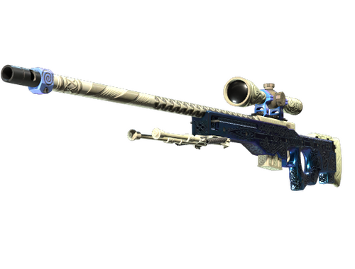 High risk and high reward, the infamous AWP is recognizable by its signature report and one-shot, one-kill policy. Odin's spear travels down this custom painted pearlescent blue and ivory AWP.
