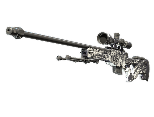 High risk and high reward, the infamous AWP is recognizable by its signature report and one-shot, one-kill policy. It has been custom painted using eggplant and white colors with flames, roses, and "the end" in front of the trigger.