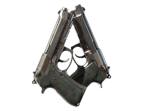Firing two large-mag Berettas at once will lower accuracy and increase load times. On the bright side, you'll get to fire two large-mag Berettas at once. The metal of these Dual Berettas has been painted rose gold and the grips are a nacred, deep jade color.