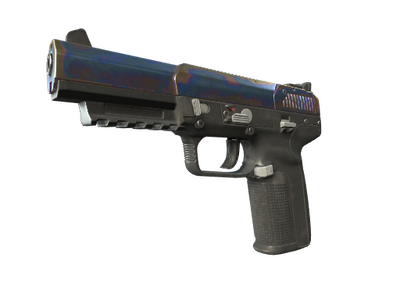 Highly accurate and armor-piercing, the pricy Five-Seven is a slow-loader that compensates with a generous 20-round magazine and forgiving recoil. It has been color case-hardened through the application of wood charcoal at high temperatures.