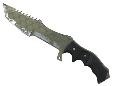A knife designed for modern tactical uses, the blade is well suited for a range of both combat and utilitarian needs. The unique Tanto point allows for maximum penetration through even the toughest of surfaces. It has been spray-painted using mesh fencing and cardboard cutouts as stencils.