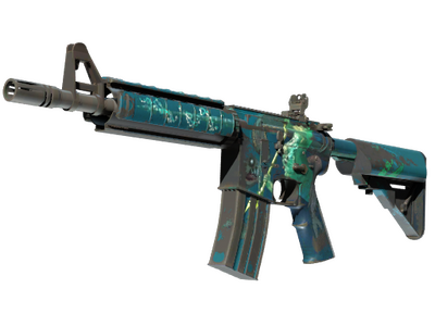 More accurate but less damaging than its AK-47 counterpart, the M4A4 is the full-auto assault rifle of choice for CTs. It has been custom painted with a depiction of a battle between Pisces and Poseidon.
