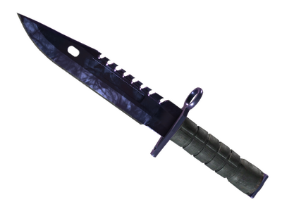 This is the M-9 bayonet. Originally intended to be mounted on a rifle, it is also well suited to close-quarters combat. It has been painted with black and silver metallic paints using a marbleizing medium, then candy coated.