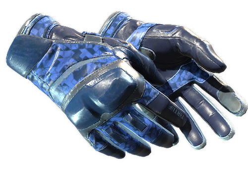 These bulky hard knuckled gloves can protect the wearers hands from road rash at 60 mph. It has been constructed from a mix of man-made materials and leather in various shades of blue.