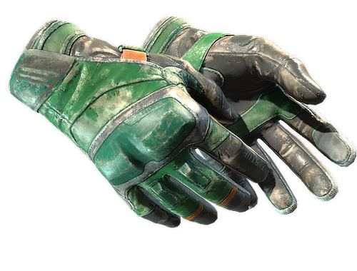 These bulky hard knuckled gloves can protect the wearers hands from road rash at 60 mph. This green and grey pair has bright orange accents.