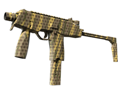 Manufactured in Switzerland, the cutting-edge MP9 SMG is an ergonomic polymer weapon favored by private security firms. This memento from Gwalior has been spray-painted using ripped tape strips and perforated metal as stencils.