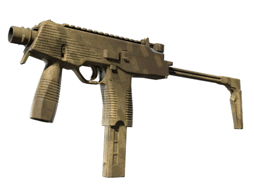 Manufactured in Switzerland, the cutting-edge MP9 SMG is an ergonomic polymer weapon favored by private security firms. It has been spray-painted using short pieces of tape as stencils. The Dust 2 Collection