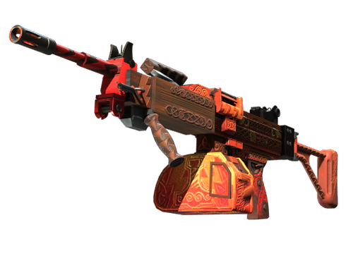 The Negev is a beast that can keep the enemy at bay with its pin-point supressive fire, provided you have the luxury of time to gain control over it. It has been custom painted red and features a number of Norse runes.