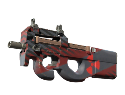 Easily recognizable for its unique bullpup design, the P90 is a great weapon to shoot on the move due to its high-capacity magazine and low recoil. It has been spray-painted with radiological warning hazard patterns. The Nuke Collection