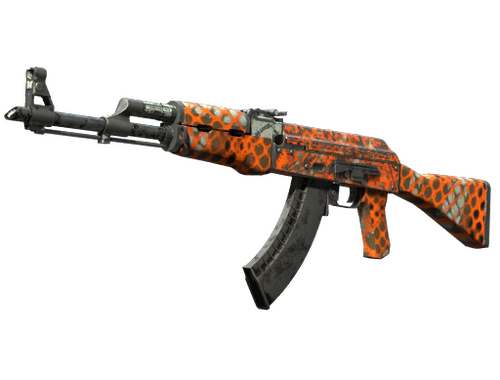 This item commemorates the BLAST.tv Paris 2023 CS:GO Championship. It was dropped during the Semifinal match between GamerLegion and HEROIC. Powerful and reliable, the AK-47 is one of the most popular assault rifles in the world. It is most deadly in short, controlled bursts of fire. An orange mesh pattern has been applied over a white base.