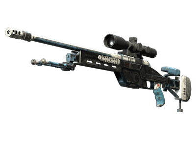 The SSG08 bolt-action is a low-damage but very cost-effective sniper rifle, making it a smart choice for early-round long-range marksmanship. It has been painted white and given arctic blue accents.