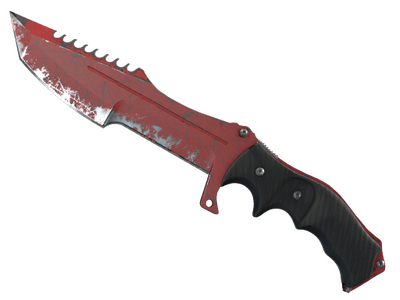 A knife designed for modern tactical uses, the blade is well suited for a range of both combat and utilitarian needs. The unique Tanto point allows for maximum penetration through even the toughest of surfaces. It has been painted using a spider web-patterned hydrographic over a red base coat and finished with a semi-gloss topcoat.