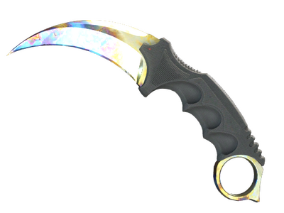 With its curved blade mimicking a tiger's claw, the karambit was developed as part of the southeast Asian martial discipline of silat. The knife is typically used with a reverse grip, with the finger ring on the index finger. It has been color case-hardened through the application of wood charcoal at high temperatures.