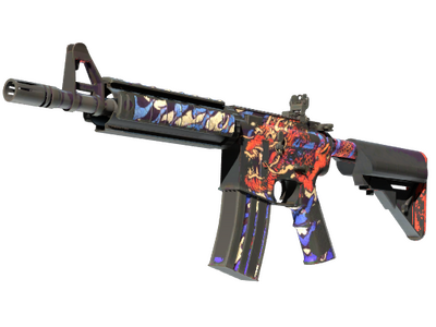 More accurate but less damaging than its AK-47 counterpart, the M4A4 is the full-auto assault rifle of choice for CTs. It has been custom painted with the image of a dragon in red and blue.