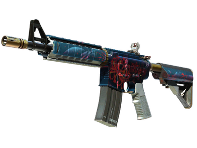 More accurate but less damaging than its AK-47 counterpart, the M4A4 is the full-auto assault rifle of choice for CTs. It has been custom painted with a dark blue base and red spider lilies above the magazine and trigger.