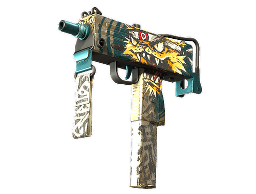 Essentially a box that bullets come out of, the MAC-10 SMG boasts a high rate of fire, with poor spread accuracy and high recoil as trade-offs. It has been custom painted with a snarling cat and a target on the rear of the receiver.