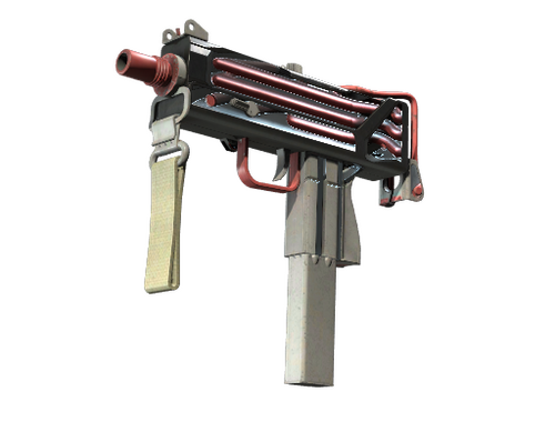 Essentially a box that bullets come out of, the MAC-10 SMG boasts a high rate of fire, with poor spread accuracy and high recoil as trade-offs. It has been custom painted to appear as if it is filled with red tubes.