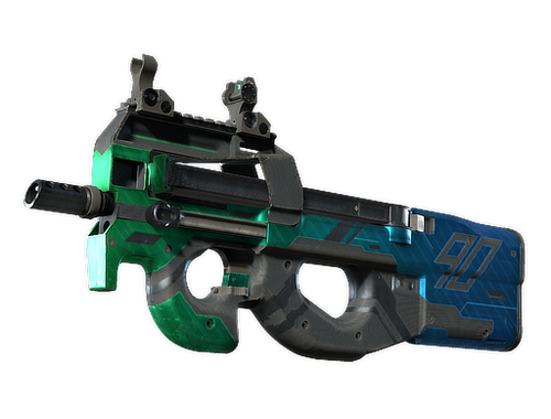 Easily recognizable for its unique bullpup design, the P90 is a great weapon to shoot on the move due to its high-capacity magazine and low recoil. It has been custom painted using an angular blue and green design.