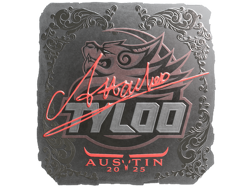 This item commemorates the BLAST.tv Austin 2025 CS2 Major Championship. This sticker can be applied to any weapon you own and can be scraped to look more worn. You can scrape the same sticker multiple times, making it a bit more worn each time, until it is removed from the weapon. This foil sticker was autographed by professional player Sheng Yuanzhang playing for Tyloo at the BLAST.tv Austin 2025 CS2 Major Championship.