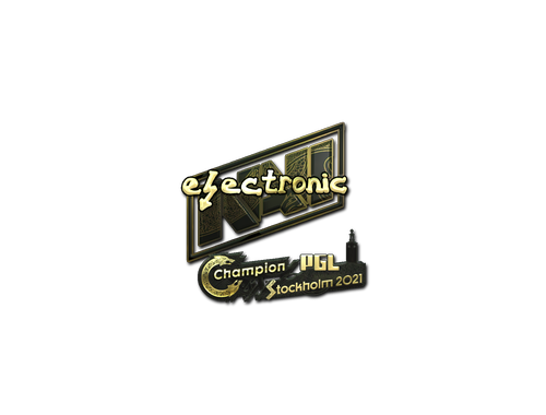 This item commemorates the 2021 PGL Stockholm CS:GO Championship. This sticker can be applied to any weapon you own and can be scraped to look more worn. You can scrape the same sticker multiple times, making it a bit more worn each time, until it is removed from the weapon. This gold sticker was autographed by professional player Denis Sharipov playing for Natus Vincere, Champion at the PGL Stockholm 2021 CS:GO Major Championship.