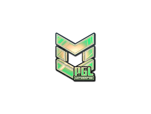 This item commemorates the 2022 PGL Antwerp CS:GO Championship. This sticker can be applied to any weapon you own and can be scraped to look more worn. You can scrape the same sticker multiple times, making it a bit more worn each time, until it is removed from the weapon.