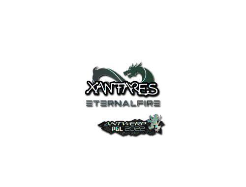 This item commemorates the 2022 PGL Antwerp CS:GO Championship. This sticker can be applied to any weapon you own and can be scraped to look more worn. You can scrape the same sticker multiple times, making it a bit more worn each time, until it is removed from the weapon. This glitter sticker was autographed by professional player Can Dortkardes playing for Eternal Fire at the PGL Antwerp 2022 CS:GO Major Championship.