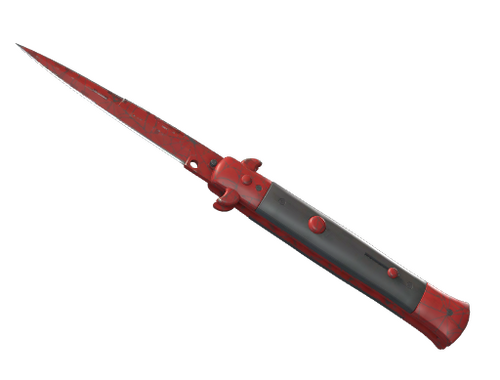 Historically a focal point of contention and even regulation, this Italian-style stiletto switchblade knife features a spring-loaded blade that can be deployed almost instantly with the push of a release catch. It has been painted using a spider web-patterned hydrographic over a red base coat and finished with a semi-gloss topcoat.