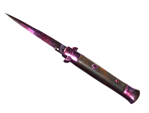Historically a focal point of contention and even regulation, this Italian-style stiletto switchblade knife features a spring-loaded blade that can be deployed almost instantly with the push of a release catch. It has been painted with black and silver metallic paints using a marbleizing medium, then candy coated.
