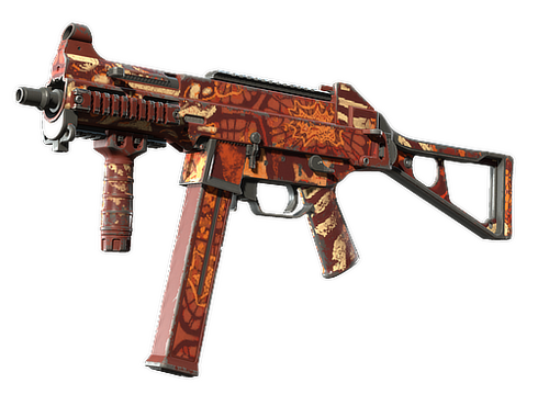 The misunderstood middle child of the SMG family, the UMP45's small magazine is the only drawback to an otherwise versatile close-quarters automatic. A tan and red animal print pattern has been applied.