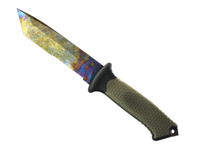 This tanto-style survival knife features a faceted blade and full tang, complete with impact pommel. No fuss, no moving parts - just a reliable blade that's ready to work. It has been color case-hardened through the application of wood charcoal at high temperatures.