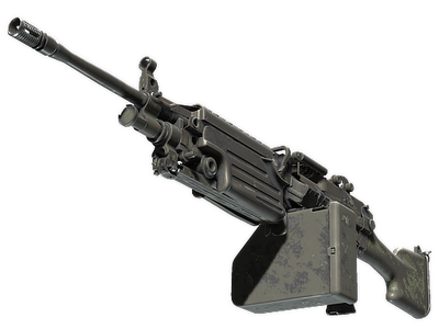 A strong open-area LMG, the M249 is the perfect choice for players willing to trade a slow fire rate for increased accuracy and a high ammo capacity. A green and grey hydrographic pattern has been applied.
