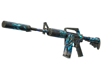With a smaller magazine than its unmuffled counterpart, the silenced M4A1 provides quieter shots with less recoil and better accuracy. A custom paint job depicting a frightening nocturnal visitor has been applied.