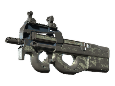 Easily recognizable for its unique bullpup design, the P90 is a great weapon to shoot on the move due to its high-capacity magazine and low recoil. A blue and grey hydrographic pattern has been applied.