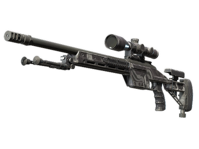 The SSG08 bolt-action is a low-damage but very cost-effective sniper rifle, making it a smart choice for early-round long-range marksmanship. A grayscale graphic pattern has been applied.