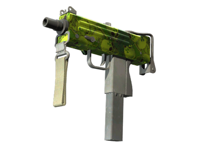 This item commemorates the 2018 FACEIT London CS:GO Championship. It was dropped during the Group Stage match between HellRaisers and Fnatic, and autographed by Jesper Wecksell who was the most valuable player in that round. Essentially a box that bullets come out of, the MAC-10 SMG boasts a high rate of fire, with poor spread accuracy and high recoil as trade-offs. It has been chromed then overlayed with a semi transparent hydrographic pattern of nuclear skulls and bones.