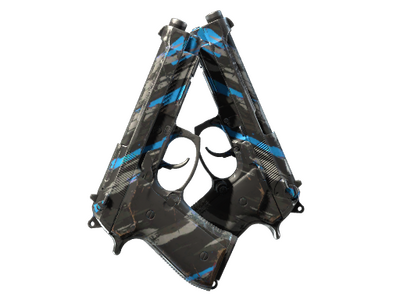 Firing two large-mag Berettas at once will lower accuracy and increase load times. On the bright side, you'll get to fire two large-mag Berettas at once. It has been spray painted with white and blue streaks on a black base.