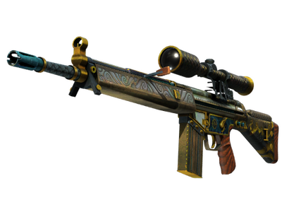 The pricy G3SG1 lowers movement speed considerably but compensates with a higher rate of fire than other sniper rifles. It has been custom painted with a nautical theme and decorative brass metal work.