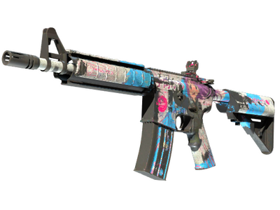 More accurate but less damaging than its AK-47 counterpart, the M4A4 is the full-auto assault rifle of choice for CTs. A custom paint job in the style of Japanese animation has been applied and depicts a female CT agent fighting against a T-side rush.