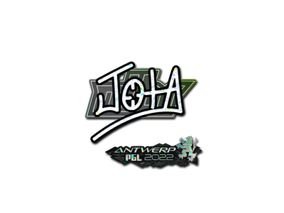 This item commemorates the 2022 PGL Antwerp CS:GO Championship. This sticker can be applied to any weapon you own and can be scraped to look more worn. You can scrape the same sticker multiple times, making it a bit more worn each time, until it is removed from the weapon. This glitter sticker was autographed by professional player Jhonatan Gaudencio playing for MIBR at the PGL Antwerp 2022 CS:GO Major Championship.