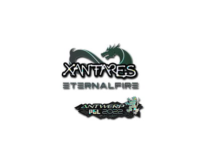 This item commemorates the 2022 PGL Antwerp CS:GO Championship. This sticker can be applied to any weapon you own and can be scraped to look more worn. You can scrape the same sticker multiple times, making it a bit more worn each time, until it is removed from the weapon. This glitter sticker was autographed by professional player Can Dortkardes playing for Eternal Fire at the PGL Antwerp 2022 CS:GO Major Championship.
