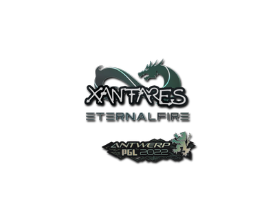 This item commemorates the 2022 PGL Antwerp CS:GO Championship. This sticker can be applied to any weapon you own and can be scraped to look more worn. You can scrape the same sticker multiple times, making it a bit more worn each time, until it is removed from the weapon. This sticker was autographed by professional player Can Dortkardes playing for Eternal Fire at the PGL Antwerp 2022 CS:GO Major Championship.