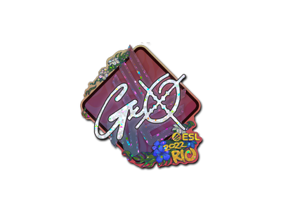 This item commemorates the IEM Rio 2022 CS:GO Championship. This sticker can be applied to any weapon you own and can be scraped to look more worn. You can scrape the same sticker multiple times, making it a bit more worn each time, until it is removed from the weapon. This glitter sticker was autographed by professional player Genc Kolgeci playing for Bad News Eagles at the IEM Rio 2022 CS:GO Major Championship.