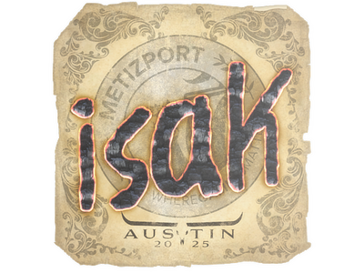 This item commemorates the BLAST.tv Austin 2025 CS2 Major Championship. This sticker can be applied to any weapon you own and can be scraped to look more worn. You can scrape the same sticker multiple times, making it a bit more worn each time, until it is removed from the weapon. This sticker was autographed by professional player Isak Fahlén playing for Metizport at the BLAST.tv Austin 2025 CS2 Major Championship.