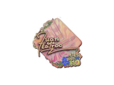 This item commemorates the IEM Rio 2022 CS:GO Championship. This sticker can be applied to any weapon you own and can be scraped to look more worn. You can scrape the same sticker multiple times, making it a bit more worn each time, until it is removed from the weapon. This holographic sticker was autographed by professional player Flatron Halimi playing for Bad News Eagles at the IEM Rio 2022 CS:GO Major Championship.