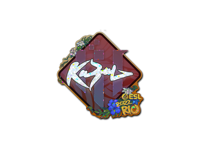This item commemorates the IEM Rio 2022 CS:GO Championship. This sticker can be applied to any weapon you own and can be scraped to look more worn. You can scrape the same sticker multiple times, making it a bit more worn each time, until it is removed from the weapon. This glitter sticker was autographed by professional player Batbayar Bat-Enkh playing for IHC Esports at the IEM Rio 2022 CS:GO Major Championship.