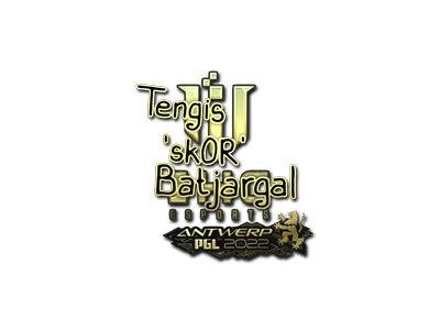 This item commemorates the 2022 PGL Antwerp CS:GO Championship. This sticker can be applied to any weapon you own and can be scraped to look more worn. You can scrape the same sticker multiple times, making it a bit more worn each time, until it is removed from the weapon. This gold sticker was autographed by professional player Tengis Batjargal playing for IHC Esports at the PGL Antwerp 2022 CS:GO Major Championship.