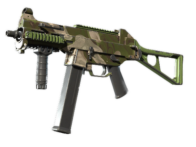 The misunderstood middle child of the SMG family, the UMP45's small magazine is the only drawback to an otherwise versatile close-quarters automatic. A green and tan pattern has been applied.